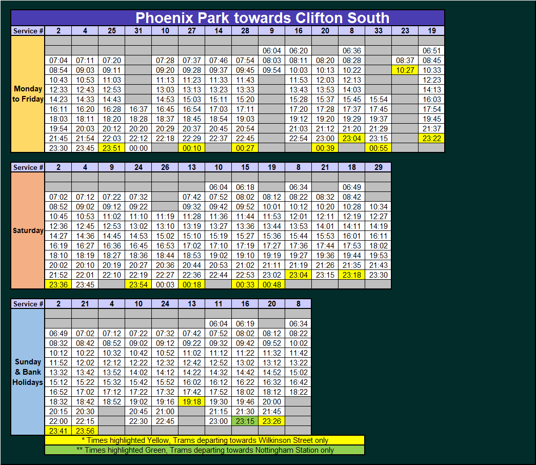 Here you will find the NCT bus service timetables to assist you in making your journey when we have ticket acceptance on them during a major disruption to our tram service.