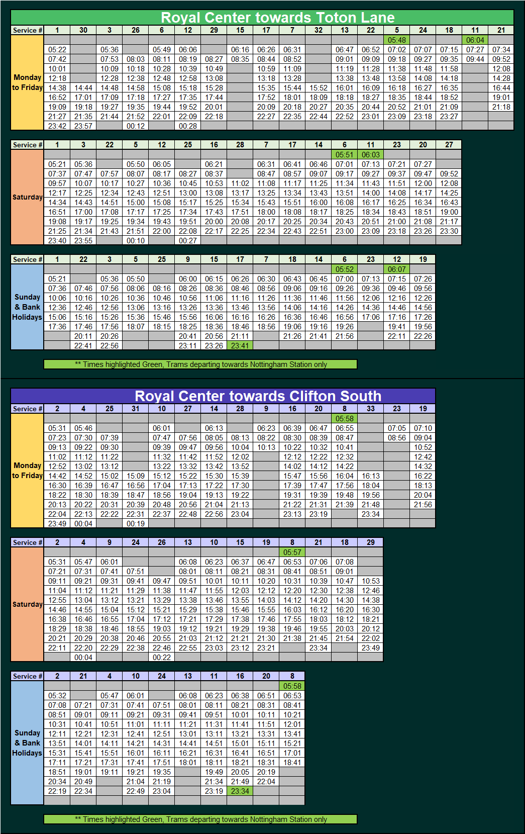 Here you will find the NCT bus service timetables to assist you in making your journey when we have ticket acceptance on them during a major disruption to our tram service.