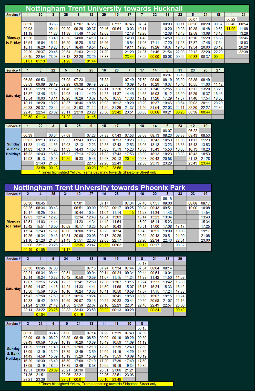 Here you will find the NCT bus service timetables to assist you in making your journey when we have ticket acceptance on them during a major disruption to our tram service.
