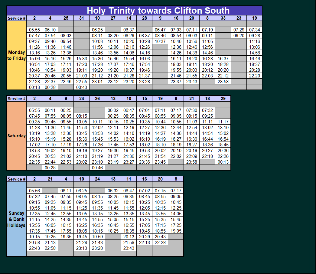 A short hop ticket purchased from Holy Trinity will cover a one-way journey to any 1 of the tramstops within the Clifton Zone as shown in the image below.