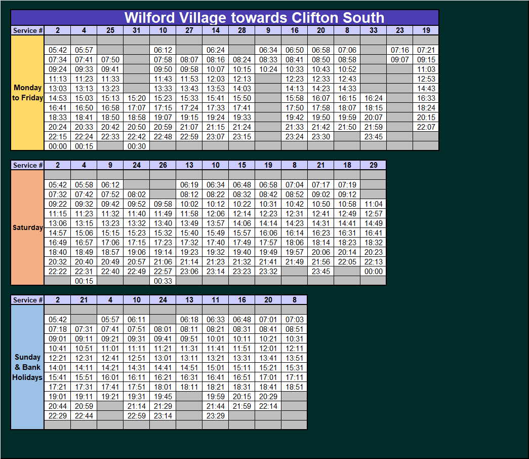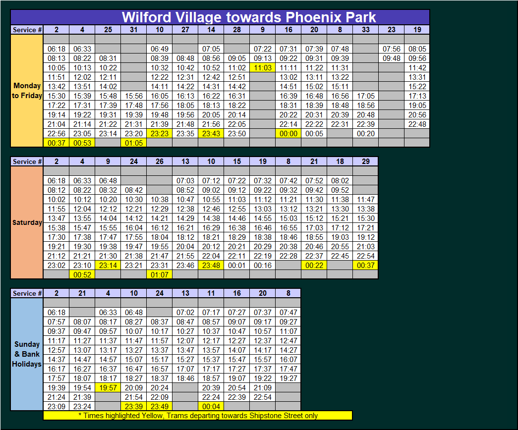 Here are the approximate journey times from Wilford Village to the following tram stops.